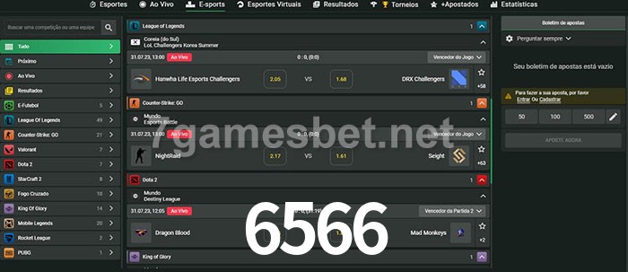 A aposta 6566 oferece aos jogadores a experiência mais conveniente de apostas em eSports!